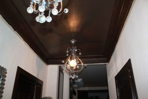 Натяжной потолок двух цветов: шоколадного цвета и цвета капучино