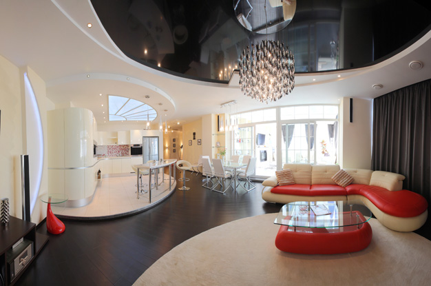Например, если человеку тяжело расслабиться, яркий натяжной потолок действовать будет только раздражающе. А вот для людей уравновешенных яркое решение потолка будет заряжать энергией, и придавать жизненного тонуса.