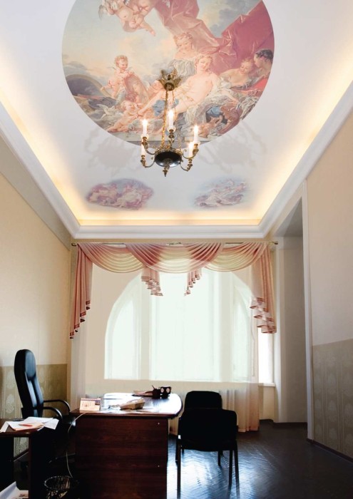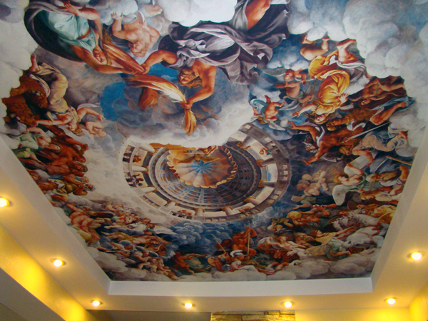 Практически все фирмы-производители изготавливают художественные натяжные потолки. Естественно, они стоят намного дороже обычных цветных натяжных потолков, но эффект, который они создают, бесценен. На такой потолок по желанию клиента можно нанести любое изображение. В среднем, цена за 1 м² художественного потолка будет составлять порядка $45.